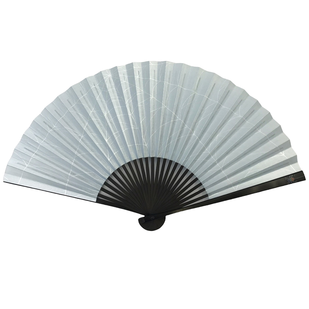まっすぐの地紙に対して、内側に曲げた親骨を紙に付けるので親骨から1~2本目の内側に紙に「ためじわ」というしわが入ることがございます。作業の工程上止むをえないもので、総手仕上げで天然素材で作った扇子ならではの特徴としてご理解いただきますようお願い申し上げます。