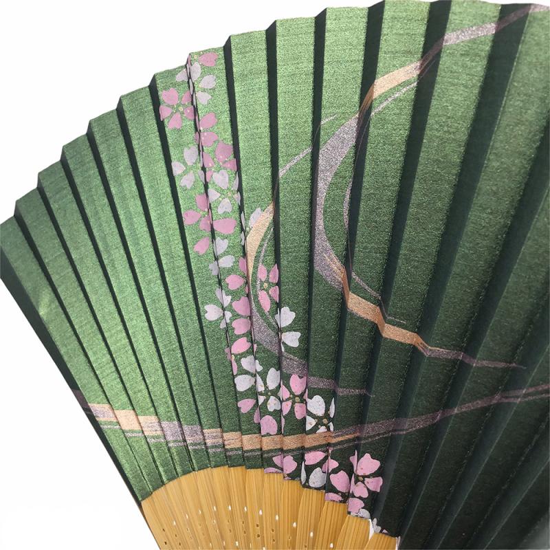 | 扇面 | 扇面紙 グリーン 流桜(手摺型刷り/京都) |