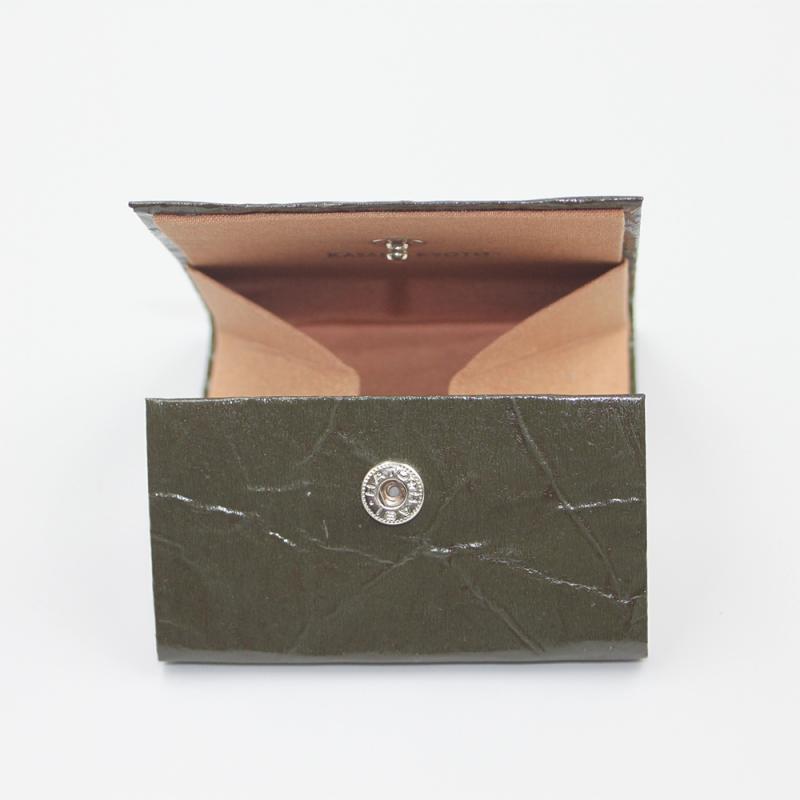 京扇子の上絵加工で培われた技術で柿渋の上に箔を付けたり、揉んだ紙に再度柿渋を塗ってシワに溜まる表情を楽しみながら、日常使いの雑貨小物へ形を変えました。