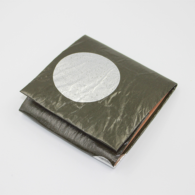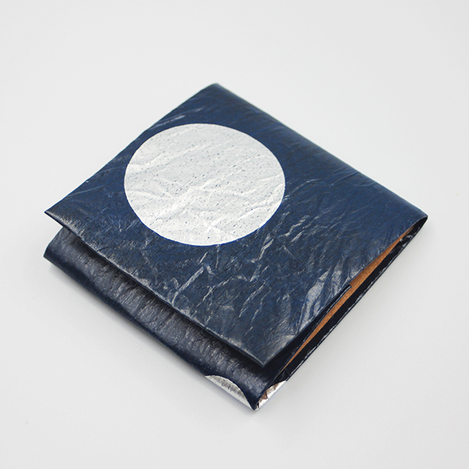 京扇子の上絵加工で培われた技術で柿渋の上に箔を付けたり、揉んだ紙に再度柿渋を塗ってシワに溜まる表情を楽しみながら、日常使いの雑貨小物へ形を変えました。