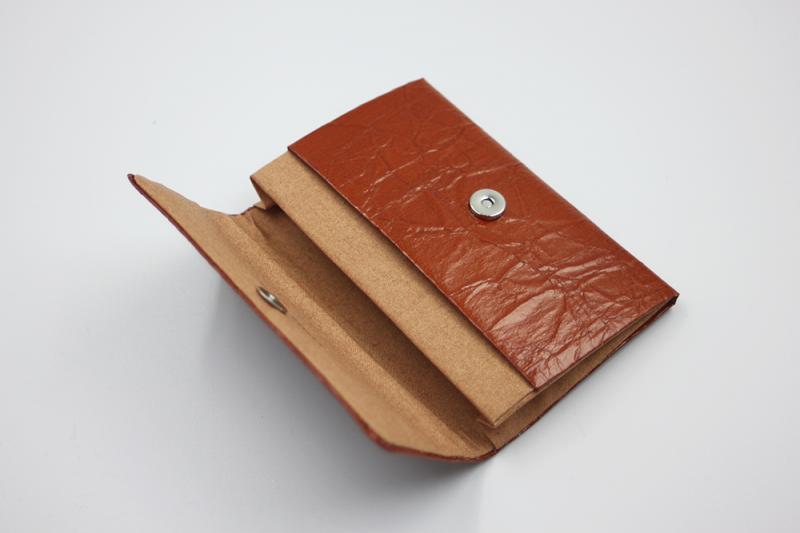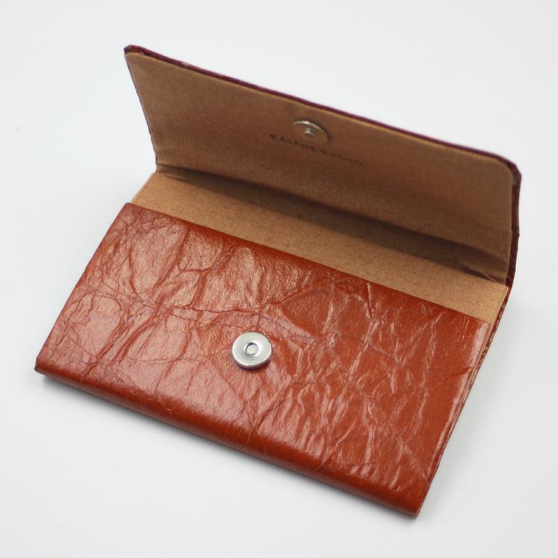 京扇子の上絵加工で培われた技術で柿渋の上に箔を付けたり、揉んだ紙に再度柿渋を塗ってシワに溜まる表情を楽しみながら、日常使いの雑貨小物へ形を変えました。
